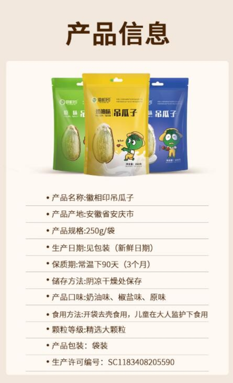 徽相印新貨吊瓜子原味大籽特大顆粒奶油味小包裝非瓜蔞籽休閒零食 奶油味 椒鹽味 原味250g*1袋