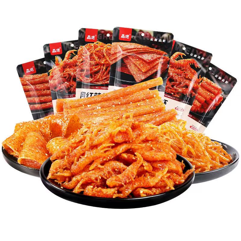森吧網紅辣條大禮包 休閒零嘴小吃 辣絲/辣條/辣棒/辣片/口味蝦 童年懷舊辣片65g*10袋