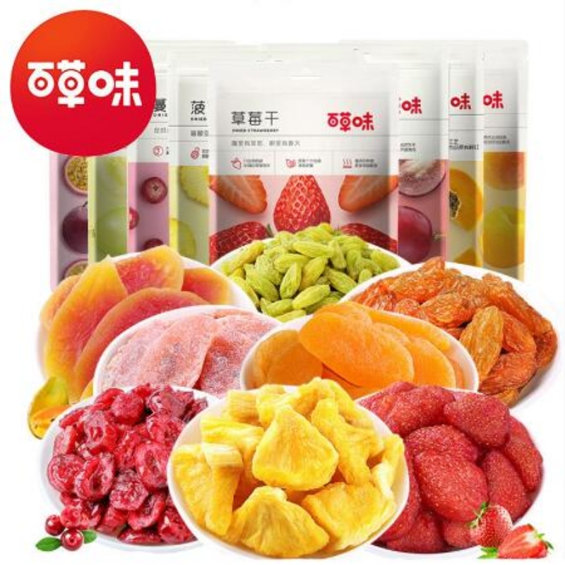 百草味 好多種果乾草莓芒果白桃鳳梨休閒零食品組合批發 100g*1袋